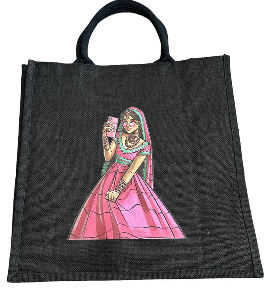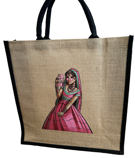 Natural Jute Black Trim Bags with Luxury Padded Hand